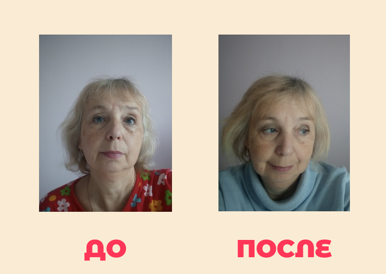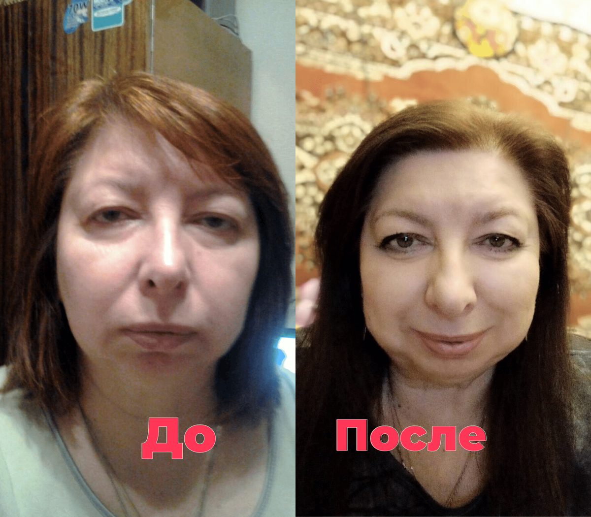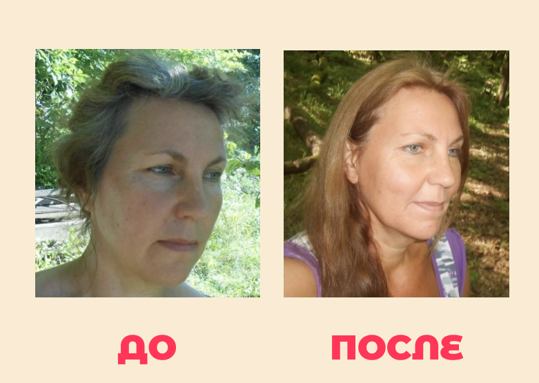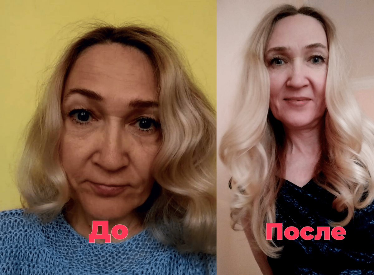 Занимаюсь ещё только два месяца, но эффект ощутила огромный: улучшилась кожа, ушли некоторые морщинки, перестала неправильно мыть, сушить и расчесывать Волосы, как это делала 44 года. Они потихоньку оживают.