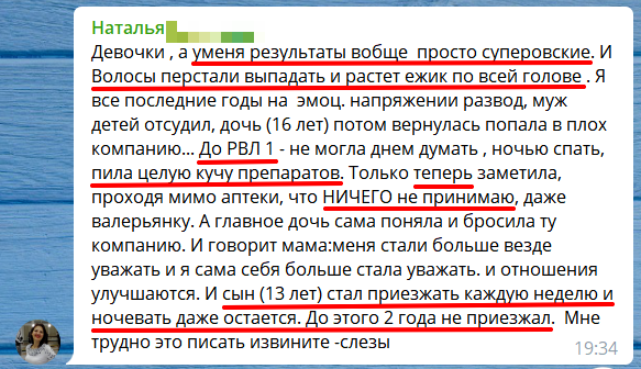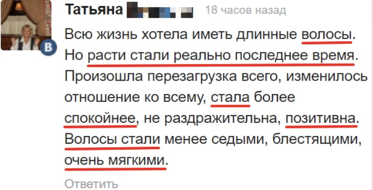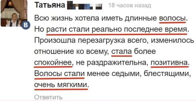 Энергии у меня стало намного больше, здоровье улучшилось, волосы теперь радуют меня Каждый день!
