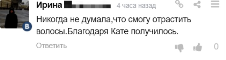 Потом я купила дорогостоящие стимуляторы для волос, так как ни горчицы, ни перцы, ни дорогие маски уже не помогали. И началось улучшение, перестали выпадать, но это на время, то есть надо всегда ими пользоваться. Тотальное выпадение я показывала только маме, а так просто купила пряди из натур. волос и пристегивала, закручивала сзади, чтобы не видно было. Думала до парика дойдёт. Но я не сдавалась и чувствовала, что что-то мне должно попасться и помочь. И это была Катя! Моя надежда!