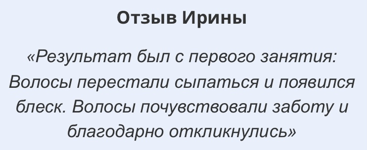 Отзыв Ирины. Курс "Роскошные Волосы"