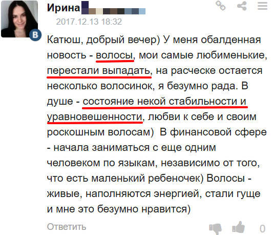 Решилась не только проблема волос, а также похудела на 10 кг, исполняются желания и меняется жизнь.